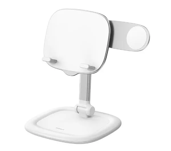 <h2>Stojak na tablet/telefon Baseus Seashell (biały)</h2><p>Stojak Baseus Seashell to idealne rozwiązanie dla osób, które chcą zadbać o swój komfort podczas korzystania z urządzeń mobilnych. Niezależnie od tego, czy rysujesz, uczestniczysz w kursach online, oglądasz filmy czy trenujesz w domu, ten stojak zapewni Ci wygodę i funkcjonalność. Oferując miejsce na tablet i iPhone, umożliwia jednoczesne korzystanie z dwóch urządzeń, co zwiększa efektywność i przyjemność z użytkowania.</p> <h2>Stabilność i bezpieczeństwo dla Twojego iPhone’a</h2><p>Dzięki zastosowaniu 16 magnesów N52 o łącznej sile 11 N Baseus Seashell gwarantuje stabilność Twojego iPhone’a. Magnetyczny uchwyt, kompatybilny z modelami iPhone 12 i nowszymi, zapewnia, że Twój smartfon pozostanie bezpieczny i stabilny. Dodatkowo możliwość regulacji położenia uchwytu w górę i w bok zwiększa elastyczność korzystania z urządzeń.</p> <h2>Uniwersalność dla różnych modeli tabletów</h2><p>Stojak Seashell jest zgodny z wszystkimi modelami tabletów, co czyni go wszechstronnym rozwiązaniem dla różnych urządzeń. Możesz umieścić w nim iPada Pro/Mini i nie tylko. Regulacja wysokości (30-150 mm) i kąta nachylenia (do 90°) pozwala na dostosowanie stojaka do indywidualnych preferencji, co jest szczególnie przydatne podczas pracy czy rozrywki. To wygoda, na jaką zasługujesz!</p> <h2>Zaprojektowany z myślą o komforcie</h2><p>Konstrukcja stojaka Seashell, z szeroką, obciążoną podstawą gwarantuje jego stabilność na biurku czy stole. Silikonowe elementy zapobiegają przesuwaniu się stojaka, co zwiększa bezpieczeństwo i komfort użytkowania. Jego funkcjonalność jest dodatkowo wzmocniona przez możliwość schowania uchwytu na smartfon, gdy nie jest używany oraz przez przestrzeń na podstawie do przechowywania drobnych akcesoriów, takich jak słuchawki TWS czy smartwatch.</p>
