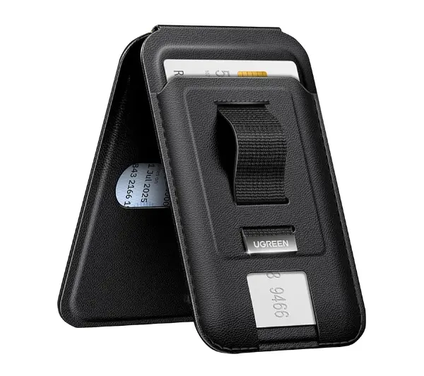 <h2>Skórzany portfel magnetyczny z funkcją podstawki i uchwytem do iPhone MagSafe Ugreen LP836</h2><p>Ugreen LP836 to przemyślane rozwiązanie łączące funkcję portfela, uchwytu i podstawki w jednym, eleganckim akcesorium. Wykonany z trwałej, ekologicznej skóry w klasycznej czerni, stanowi praktyczny i stylowy dodatek, który sprawdzi się doskonale na co dzień.</p> <h2>Potężny magnes, mocne przywieranie</h2><p>Portfel z magnesem o imponującej sile 1300g pewnie przylega do iPhone’a, przewyższając mocą standardowe produkty na rynku o aż 185%. Możesz być pewny, że portfel pozostanie na swoim miejscu, zapewniając bezpieczne przechowywanie kart oraz stabilne połączenie z telefonem.</p> <h2>Funkcjonalne przegródki na karty</h2><p>Dzięki trzem przemyślanym przegródkom portfel pomieści najważniejsze karty, a specjalna siatka zabezpiecza je przed demagnetyzacją. Pozwala to mieć pod ręką to, czego potrzebujesz, bez obaw o uszkodzenie.</p> <h2>Pewny chwyt</h2><p>Portfel posiada antypoślizgowy pasek wykonany z nylonu, który nie tylko dodaje mu stylowego wyglądu, ale również gwarantuje stabilne trzymanie. Dzięki temu możesz uniknąć przypadkowego upuszczenia smartfonu – idealne rozwiązanie do codziennego użytkowania.</p> <h2>Regulowana podstawka dla większej wygody</h2><p>Funkcja podstawki umożliwia ustawienie telefonu pod wybranym kątem od 30° do 150°, co zapewnia wygodę podczas oglądania treści, rozmów wideo czy czytania. Wzmocniony zawias, który przetestowano w ekstremalnych warunkach, zapewnia niezawodność nawet przy częstym użytkowaniu.</p> <h2>Idealne dopasowanie do Twojego iPhone’a</h2><p>Portfel ten pasuje do iPhone’ów z serii 12 do najnowszej serii 15, w tym wersji Pro i Pro Max. Możesz więc cieszyć się idealnym dopasowaniem i pełną kompatybilnością z funkcją MagSafe, bez potrzeby stosowania dodatkowych elementów.</p>
