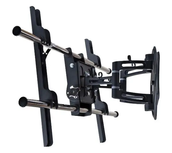Uchwyt do telewizora na podwójnym ramieniu z regulacją w pionie i poziomie oraz wbudowaną poziomicą ułatwiającą montaż. Umożliwia zamontowanie telewizora w narożniku pomieszczenia lub wysoko, tuż pod sufitem. Na ramionach uchwytu umieszczone zostały klipsy do prowadzenia przewodów. Eleganckie wykończenie uchwytu z chromowanymi elementami zapewni idealne wpasowanie do szykownych salonów i pomieszczeń hotelowych. W komplecie zestaw montażowy oraz instrukcja obsługi. <ul> <li>Rozmiar telewizora: maks. 75 cali</li> <li>Waga telewizora: maks. 50kg</li> <li>VESA: kompatybilny, maks. 800x400</li> <li>Regulacja w pionie: +/- 15°</li> <li>Regulacja w poziomie: +/- 90°</li> <li>Odstęp telewizora od ściany: 140 – 410 mm </li></ul>