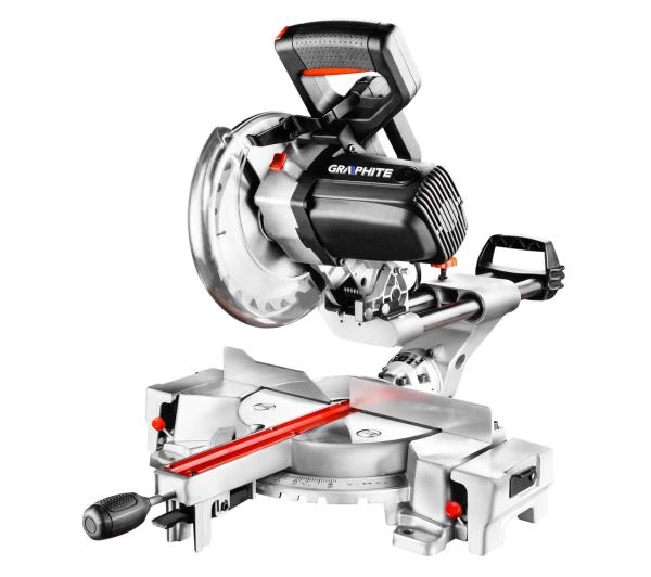Pilarka ukosowa GRAPHITE z funkcją posuwu głowicy, napędzana silnikiem o mocy 1800W, przeznaczona do precyzyjnego cięcia dużych elementów drewna i materiałów drewnopochodnych. Urządzenie posiada możliwość regulacji wsporników obrabianego materiału, a także opcję szybkiego ustawienia popularnych kątów cięcia. Zakres cięcia kątowego i ukosowego wynosi od 0° do 45°. Pilarka o zwartej i stabilnej konstrukcji, wykonanej ze stopu aluminium, posiada metalową blokadę wrzeciona. Dla komfortu i bezpieczeństwa rękojeść główna urządzenia została pokryta antypoślizgowym materiałem. Precyzyjne ustawienie ciętego materiału ułatwi wskaźnik laserowy zintegrowany z urządzeniem. Istnieje możliwość samodzielnej wymiany szczotek węglowych od zewnątrz. W zestawie z pilarką znajdują się: worek na pył, zacisk pionowy do trzymania obrabianego materiału i klucz montażowy. Zgodność z europejskimi standardami zapewnia certyfikat CE.