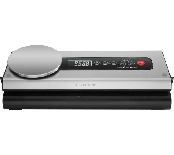 - Funkcje dodatkowe: dwie prędkości pakowania, funkcja odsysania, nóż do odcinania folii, wyświetlacz cyfrowy