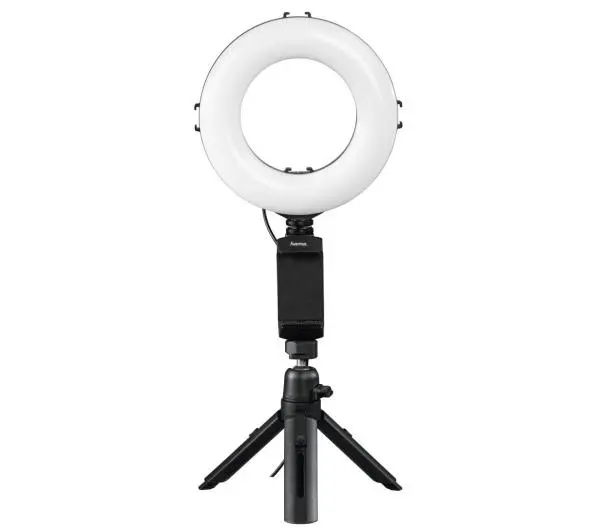 <h2>Popraw jakość swoich filmów</h2><p>Lampa pierścieniowa LED sprawi, że Twoje filmy i zdjęcia zyskają zupełnie nową jakość bez konieczności używania zaawansowanego sprzętu. To wygodne rozwiązanie dla blogerów, vlogerów, influencerów i innych osób, którym zależy na przygotowaniu materiałów dobrej jakości.</p><h2>3 odcienie światła</h2><p>Dzięki dostępnym opcjom i możliwości regulowania światła za pomocą pilota zawsze będziesz wyglądać dobrze i wyeksponujesz atuty otoczenia. Do dyspozycji masz trójstopniową skalę: od ciepłej bieli do oświetlenia dziennego (2500/3800/5500 K).</p><h2>Rozwiązanie dla mobilnych</h2><p>Lampa pierścieniowa LED sprawdzi się jako akcesorium dla osób pracujących w domu i w terenie. Znakomicie wyposaży mobilne studio zdjęciowe – bez kłopotu złożysz ją i schowasz w podstawie, aby w łatwy sposób przetransportować do celu. Ma niewielkie gabaryty, dlatego zmieści się w plecaku lub walizce.</p><h2>Zdalny wyzwalacz</h2><p>Funkcjonalność lampy uzupełnia znajdujący się w zestawie zdalny wyzwalacz Bluetooth pozwalający na robienie zdjęć bez sięgania do smartfona.</p><h2>Regulacja wysokości</h2><p>Ustawienia lampy możesz dopasować do swoich potrzeb i specyfiki przygotowywanego materiału. Lampa posiada bezstopniowe pochylanie, wysokość regulowaną w przedziale od 13,5 cm do 17,5 cm oraz gumowe nóżki, które zapewniają stabilne mocowanie na śliskich czy nierównych powierzchniach.</p><h2>Dostosuj pozycję smartfona</h2><p>Uchwyt na telefon został ulokowany na elastycznym wysięgniku z głowicą kulową, dlatego urządzenie możesz ustawiać pionowo lub poziomo, regulując także kąt nachylenia.</p><h2>Power pack</h2><p>Długi kabel USB (175 cm) z kolei możesz podłączyć do power packa, aby korzystać z lampy całkowicie mobilnie, nie mając dostępu do zasilania sieciowego.</p><h2>Cechy:</h2><p> </p><ul> <li>3-etapowa kontrola barwy światła (3000/4500/6000 K)</li> <li>Pilot na kablu do zdalnego sterowania lampą</li> <li>Natężenie światła regulowane w 10 stopniach</li> <li>Regulacja wysokości od 13,5 cm do 17,5 cm</li> <li>Do użycia również jako statyw stołowy</li> <li>Uchwyt do smartfona z głowicą kulową - Oświetlenie pierścieniowe 6" (zewnętrzna średnica 16 cm) z 48 diodami LED</li> <li>Dostosowany do wielu smartfonów i tabletów sprężynowy uchwyt zaciskowy z przełącznikiem do wydłużenia rozmiaru od 6,5 do 17,5 cm</li> <li>Kabel ładujący USB-A o długości 175 cm</li> <li>Zdalny wyzwalacz Bluetooth</li> <li>Łatwa w składaniu i przenoszeniu konstrukcja z aluminium i plastiku</li> <li>Torba do przechowywania w zestawie</li></ul><p> </p><p> </p><p>Uwaga dla użytkownika:</p><p>Funkcja wyzwalacza Bluetooth jest uzależniona od oprogramowania Twojego urządzenia. Prosimy o wcześniejsze sprawdzenie w informacji dostarczonej przez producenta lub w internecie, czy Twój smartfon wspiera działanie zdalnego wyzwalacza do zdjęć.</p><h2>DLACZEGO HAMA?</h2><p>Jesteśmy niemieckim producentem i dystrybutorem akcesoriów oraz sprzętu elektronicznego. Działamy w wielu obszarach, śledzimy trendy technologiczne i już od niemal 100 lat tworzymy rozwiązania, które sprawiają, że codzienne życie jest po prostu łatwiejsze.</p><p>Artykuły Hama to niezawodne i certyfikowane produkty, które poddawane są restrykcyjnym testom przez nasz wewnętrzny dział zapewnienia jakości QC. Posiadają wszystkie wymagane prawem certyfikaty, dopuszczające je do handlu w Polsce, m.in. CE i TÜV. W konsekwencji wszystkie nasze produkty są w pełni bezpieczne dla swoich użytkowników.</p>