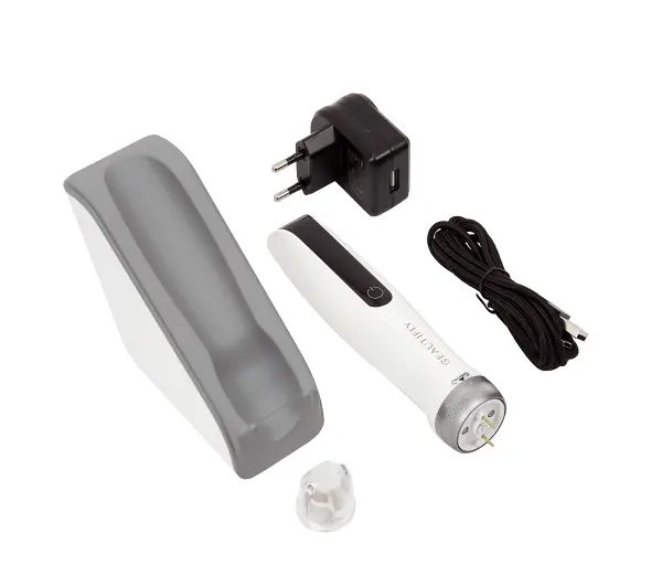 - Funkcje dodatkowe: 3 tryby pracy, czerwone i niebieskie światło fotonowe, oświetlenie LED, poprawa elastyczności skóry i tkanek, poprawa krążenia krwi, poprawa odżywienia skóry, redukcja zmarszczek, wskaźniki LED, zwiększenie produkcji kolagenu