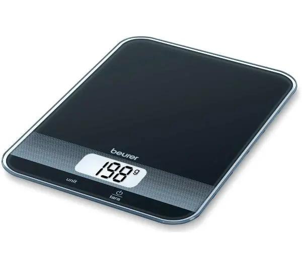 <h2>Waga elektroniczna, która doda charakteru każdej kuchni</h2><p>Waga kuchenna Beurer KS 19 to idealny dodatek do kuchni – nie tylko przyciąga wzrok swoim stylowym designem, ale również cechuje się funkcjonalnością i łatwością w użyciu.</p> <p>Wagę kuchenną KS 19 Black obsłużysz jednym dotykowym przyciskiem, co czyni ją łatwą w obsłudze i przyjazną dla użytkownika. W prosty sposób przełączysz miarę, którą wybierzesz spośród następujących: gramy, uncje, uncje płynu, funty czy mililitry – dopasujesz pomiar do swoich indywidualnych potrzeb. Praktyczna funkcja tarowania umożliwia elastyczne ważenie produktów. A dzięki obciążeniu do 5 kg i stopniowaniu co 1 g – zmierzysz mniejsze i większe ilości z dużą precyzją.</p> <h3>Klasyczna i precyzyjna</h3><p>taka jest KS 19 w eleganckim, czarnym kolorze. Jej design przykuje wzrok i wprowadzi klasyczny akcent wśród innych kuchennych sprzętów.</p> <p>Dokładna waga kuchenna KS 19 ma niecałe 2 cm wysokości – dzięki płaskiej, kompaktowej konstrukcji łatwo przechowasz ją w szafce czy na półce. Wyświetlacz ma wymiary ok. 4,5 x 2,3 cm, a wysokość cyfr wynosi 20 mm, co czyni je wyraźnymi i łatwymi do odczytania. Wskaźnik przeciążenia ostrzeże Cię, gdy umieścisz na wadze zbyt duży ciężar, co pomoże zapobiec uszkodzeniu wagi i zapewni, że pomiary będą dokładne. Dodatkowo, precyzyjna waga kuchenna KS 19 wyłączy się automatycznie po określonym czasie bezczynności, aby oszczędzać baterie. A jeśli jesteśmy już przy bateriach – komplet pasujący do urządzenia znajdziesz w zestawie, dzięki czemu będziesz mógł użyć wagi od razu.</p> <h3>Wypełnij swoją kuchnię elegancją</h3><p>Oprócz stylowego wyglądu, waga elektroniczna gramowa Beurer KS 19 wyróżnia się trwałością i wysoką jakością użytych materiałów. Niezależnie od tego, czy odmierzasz mąkę na jabłecznik, czy ważysz składniki do pikantnego dania obiadowego – waga domowa KS 19 upora się z zadaniem. Dzięki praktycznym funkcjom i eleganckiemu designowi waga kuchenna do 5 kg stanie się niezbędnym narzędziem w Twojej kuchni.</p>