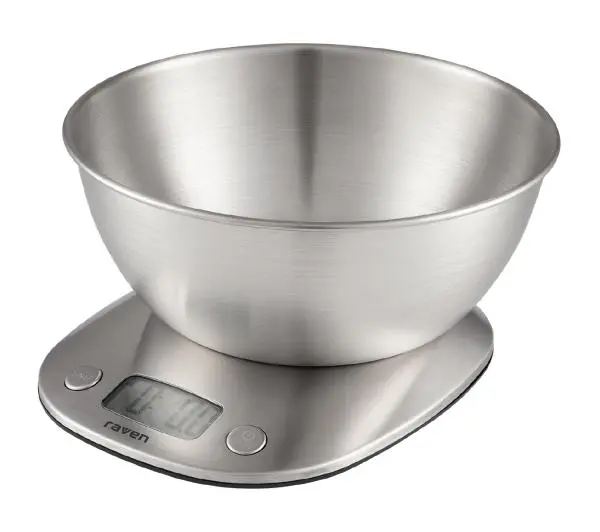 Waga kuchenna EWK009✓ Wykonana ze stali szlachetnej – solidna i elegancka✓ Obciążenie do 5 kg pozwala na ważenie cięższych produktów spożywczych✓ Gotowa do pracy – do zestawu dołączono 2 baterie AAA<a>Korzyści dla Ciebie</a><a>Co otrzymujesz</a><a>Warto wiedzieć</a>Korzyści dla Ciebie Z misąlub bez Musisz precyzyjnie odmierzyć ilość składników potrzebnych do przygotowania ciasta? A może chcesz się przekonać, ile waży wyhodowany własnoręcznie kabaczek? W obu przypadkach doskonale sprawdzi się waga kuchenna Raven EWK009. Produkt pozwala na ważenie produktów w dołączonej do zestawu misie lub bez niej, co daje Ci możliwość ważenia zarówno sypkich mąk i cukru, jak i całych owoców i warzyw o różnych kształtach. Precyzyjneważenie Teraz każda potrawa, ciasto czy inny deser wyjdą Ci perfekcyjnie! Dzięki urządzeniu Raven EWK009 możesz trzymać się przepisów z najwyższą dokładnością. Waga waży z precyzją do 1 grama, więc nie musisz się obawiać, że przesadzisz z ilością suchych drożdży, proszku do pieczenia czy innych składników, który dodaje się bardzo mało. Wyniki pomiarów bez trudu odczytasz natomiast na wyrazistym wyświetlaczu LED. Liczneudogodnienia Działanie wagi kuchennej z łatwością dopasujesz do potrzeb. Możesz bowiem wybrać jednostkę masy, by uzyskać odpowiednie wartości pomiarów używanych zarówno w Polsce, jak i za granicą. Dzięki funkcji tarowania możesz do tej samej misy odważać kolejne porcje składników, a wskaźnik baterii poinformuje Cię o konieczności wymiany akumulatorków. Wszystko to sprawia, że obsługa urządzenia Raven EWK009 jest w pełni intuicyjna. Bateriew zestawie Twoja waga kuchenna będzie gotowa do pracy od razu po zakupie, ponieważ wraz z nią otrzymasz niezbędne do jej uruchomienia baterie AAA. W związku z tym możesz natychmiastowo rzucić się w wir kuchennych inspiracji. Co więcej, urządzenie Raven EWK009 zapewnia oszczędność baterii przy codziennym użytkowaniu, ponieważ automatycznie się wyłącza po każdym użyciu.Co otrzymujesz W zestawie:✓ Waga z misą✓ 2 baterie AAA✓ Instrukcja obsługi z kartą gwarancyjnąWarto wiedzieć Czy warto korzystać z wagi kuchennej? <p>Korzystanie z wagi kuchennej jest sporym ułatwieniem przy codziennym gotowaniu. Nie musisz już odmierzać mąki i cukru na szklanki, by przygotować wypieki ze składników w odpowiednich proporcjach. Teraz szybko i łatwo zważysz je na urządzeniu Raven EWK009. Takie rozwiązanie okaże się także przydatne dla osób, które trzymają się różnorakich diet – waga pomoże im w codziennym spożywaniu dokładnie takich porcji jedzenia, jakich potrzebują.</p>