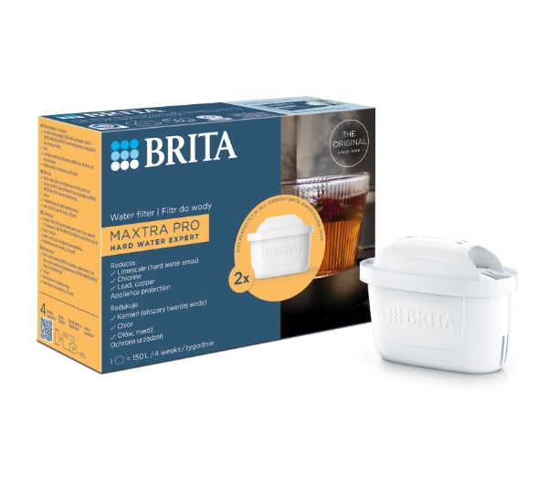 Filtr do wodyMAXTRA PRO Hard Water Expert 2 szt. <p>Brak kamieniaw czajniku, ekspresiedo kawy i w innychkuchennych sprzętach</p> <p>Herbatabez osadu</p> <p>Lepsza redukcjatwardości wodyniż MAXTRA PROPure Performance</p> <p>Mniejplastikowychodpadów</p> <p>Wydajność:150 l / 4 tyg.</p> <p>RECYKLING Daj filtromnowe życie</p><p>Technologia filtracjiMAXTRA PRO Hard Water Expert</p> <p>O 50% lepsza redukcjatwardości wody niżMAXTRA PRO Pure Performance.</p><p>Mniej kamienia w czajnikui ekspresie do kawy.</p><p>Świetna baza do napojówzimnych i gorących.</p><p>Wydajność filtra: 150 l / 4 tyg.</p><p>Filtrw postaci drobnej siatki</p><p>Skuteczne perełki wymiennika jonowego</p><p>Mikroperełki węgla aktywnego wytwarzanego z łupin kokosa</p><p>Dodatkowasiateczka filtrująca = 4 x lepsza filtracja niż w poprzednich filtrach MAXTRA+</p><p>Jak działa filtr?</p><p>Bardzo drobnasiatkawychwytujewiększe cząstkizanieczyszczeń.</p><p>Wydajneperełki wymiennikajonowego: -zmiękczają wodę-redukują metale,takie jakołów i miedź*.</p><p>Naturalny węgiel aktywny:-redukuje chlor i usuwasubstancje negatywniewpływające na smak- filtruje herbicydy,pestycydy,farmaceutyki*.</p><p>Dodatkowasiateczka filtrującazatrzymuje drobnezanieczyszczeniatakie jakpiasek, rdza.</p><p>*jeśli występują w wodzie kranowej</p><p>Odkryj też filtrMAXTRA PRO Pure Performance</p><p>Ekspert od wody pitej na zimnooraz napojów na bazie zimnej wody</p> <p>Idealne źródłonawodnieniadla miłośnikówzimnej wody</p> <p>Obudowaw 50%z bioplastiku</p> <p>Wydajność:do150 l / 4 tyg.</p> <p> </p><p>Daj filtrom nowe życie</p><p>REJESTRUJdodatkowy rokgwarancji</p><p>WYMIENIAJFILTRYpo 30 dniach</p><p>Zachowaj zużytyfiltr MAXTRA PRO/ MicroDiscpo wymianiena nowy</p><p>Zbierz 6 filtrówBRITA i wyślij jena adres firmyBRITA Polska</p><p>Dostanieszprzesyłkęzwrotnąz nowym filtremna wymianę</p><p>Zużyte filtrypojadądo zakładurecyklingowegow Niemczechi damy im drugieżycie</p><p>Nowa jakość z BRITA VITAna smartfonie!</p> <p>Z aplikacją zmieniszfiltr BRITA na czas!</p>