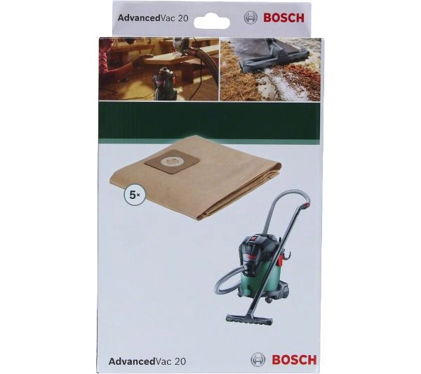 Papierowe worki do pyłu i suchych nieczystości. Dedykowane do odkurzacza AdvancedVac 20. W zestawie 5 sztuk. Rozmiar 860 x 225 x 120 mm.