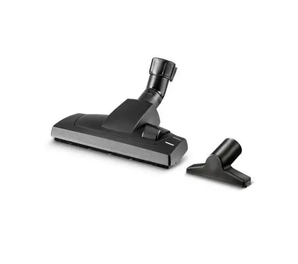 Zestaw do odkurzania domuZestaw akcesoriów do odkurzania w domu. Składa się ze ssawki podłogowej przełączanej do odkurzania podłóg twardych i dywanów oraz ssawki do tapicerki.