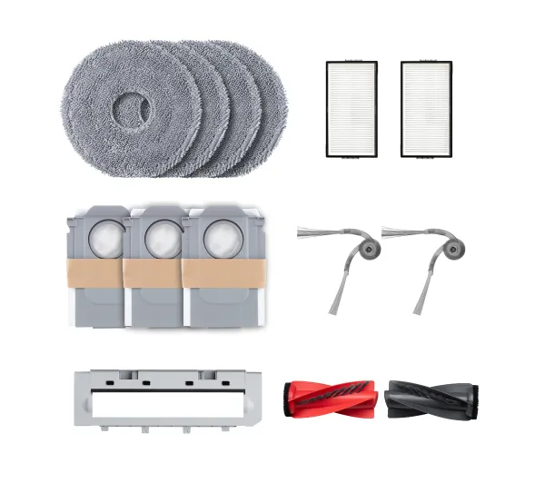 - W zestawie: , szczotka: 2 x boczna, główna, 2 x filtr, 3 x worek, 4 x nakładka do mopowania, pokrywa głównej szczotki