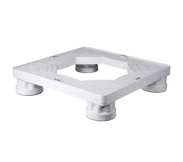 Cechy:<ul> <li>przeznaczona do pralek, suszarek, lodówek oraz klimatyzatorów o maksymalnych wymiarach 60 x 60 cm,</li> <li>wykonana z wytrzymałego tworzywa sztucznego (maksymalne obciążenie do 250kg),</li> <li>cztery regulowane na wysokość nóżki z podkładkami antypoślizgowymi (zakres regulacji: 12.5 – 14 cm),</li> <li>wyposażona w cztery poziomice umożliwiające prawidłowe wypoziomowanie pralki. </li></ul>Wymiary:602 x 602 x 125 - 140 mm