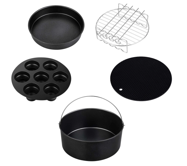 Wyposażenie: forma do muffinów, forma do pieczenia, forma do pizzy, mata silikonowa, ruszt