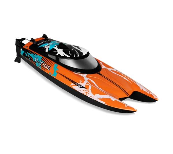 <h2>X-Tide. Energia RC w wodzie</h2><p>Wykonuj spektakularne manewry lub ścigaj się z innymi z X-Tide – łódką RC, która osiąga prędkość 25 km/h. Poczuj adrenalinę podczas wodnych akrobacji.</p> <h2>Ponad pół godziny pływania</h2><p>Przygoda może trwać nawet po wyczerpaniu baterii. W X-Tide szybko możesz wymienić ją na drugi akumulator (zwarty w zestawie) i cieszyć się dalszą zabawą – nawet przez 34 minuty bez potrzeby ładowania.</p><h2>Alarm przed rozładowaniem i utratą zasięgu</h2><p>Jeśli poziom baterii będzie niski, kontroler powiadomi Cię o tym za pomocą sygnału dźwiękowego i lampki. Podobnie będzie w sytuacji zbliżenia się do granicy maksymalnego zasięgu (100 m).</p> <h2>Efektowne funkcje</h2><p>Przycisk na pilocie aktywuje funkcję Demo, w której łódka wykonuje na wodzie „ósemkę”, co wygląda bardzo efektownie. X-Tide ma zainstalowaną również funkcję automatycznego obrotu, jeśli przewróci się dnem do góry.</p><h2>Smart Water Start</h2><p>Śruba łodzi RC zacznie pracować dopiero po kontakcie z wodą, więc nie uruchomisz jej przypadkowo, trzymając w ręce. Natomiast system chłodzenia napędu wodą zapobiega przegrzewaniu silnika.</p> <h2>Regulacja maksymalnej prędkości i trymu</h2><p>X-Tide to doskonała łódź zarówno dla fanów RC, jak i rozpoczynających swoją przygodę ze zdalnie sterowanymi modelami. Dzięki trybowi ograniczonej prędkości łatwiej postawisz pierwsze kroki w wodnym świecie.</p><h2>Piorunujący design</h2><p>Kształt przypominający katamaran oraz efektowny design czynią X-Tide jedną z najatrakcyjniejszych łódek RC na rynku. Wzór kadłuba jest doskonale widoczny na wodzie i przyciąga wzrok.</p> <h2>W zestawie</h2><ul> <li>Łódź RC</li> <li>2 x bateria Li-Ion</li> <li>Pilot</li> <li>Stojak na łódkę</li> <li>Przewód ładujący USB</li> <li>Śrubokręt</li></ul>