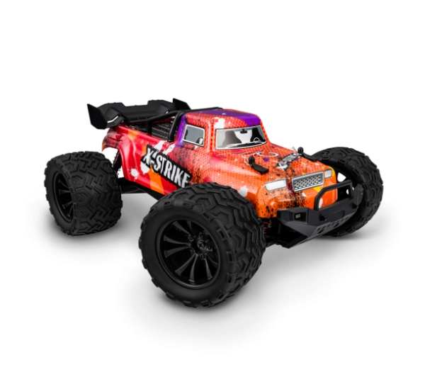 <h2>X-Strike. Terenowe emocje w kompaktowej wersji</h2><p>Piaskowe szosy, szutrowe drogi i asfaltowe ulice nie stanowią problemu dla X-Strike. Jego duże, terenowe koła (8 cm wysokości i 5 cm szerokości) pozwalają na pokonywanie wymagających nawierzchni.</p> <h2>Wytrzymała konstrukcja</h2><p>Skala 1:16, w której został wykonany X-Strike, zapewnia doskonały balans między zwinnością a stabilnością. Wzmocniona konstrukcja pozwoli Ci pokonywać terenowe trasy.</p><h2>Ergonomiczny kontroler</h2><p>Łatwe sterowanie samochodem zapewnia ergonomiczny, dopasowany do dłoni kontroler. Trymery pozwalają na ustawienie zbieżności kół oraz regulację przepustnicy.</p> <h2>Prędkość w terenie</h2><p>X-Strike to nie tylko król terenowych dróg, ale również szybki samochód RC, który osiąga prędkość 30 km/h. Śmiało sprawdź jego osiągi podczas wyścigów z przyjaciółmi.</p><h2>Na długie trasy</h2><p>Przemierzaj długie trasy i steruj pojazdem nawet z dużej odległości, utrzymując stabilne połączenie z pilotem. Zasięg kontrolera to aż 100 metrów!</p> <h2>Zestaw akumulatorów</h2><p>Wraz z X-Strike otrzymujesz dwa akumulatory, które pozwalają na 40 minut zabawy bez potrzeby ładowania. Baterie wymienia się szybko i łatwo.</p><h2>Atrakcyjne oświetlenie</h2><p>Samochód jest łatwy do dostrzeżenia nawet po zmroku dzięki wbudowanym światłom LED, które nadają pojazdowi eleganckiego stylu.</p> <h2>W zestawie</h2><ul> <li>Samochód RC</li> <li>Kontroler</li> <li>Zestaw narzędzi</li> <li>Przewód do ładowania</li> <li>2 x bateria</li> <li>Instrukcja obsługi</li></ul>