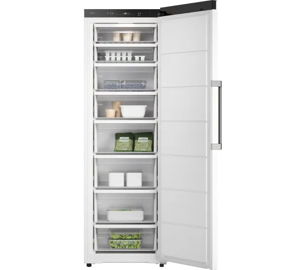 Dzięki zdalnemu sterowaniu możesz zmieniać ustawienia swojej zamrażarki z dowolnego miejsca. Kontroluj temperaturę, uruchamiaj programy, otrzymuj powiadomienia – wszystko za pomocą smartfona. W ten sposób możesz oszczędzać energię i zyskać pewność, że produkty są przechowywane w odpowiednich warunkach. Kontroluj pracę urządzenia i ciesz się intuicyjną obsługą!