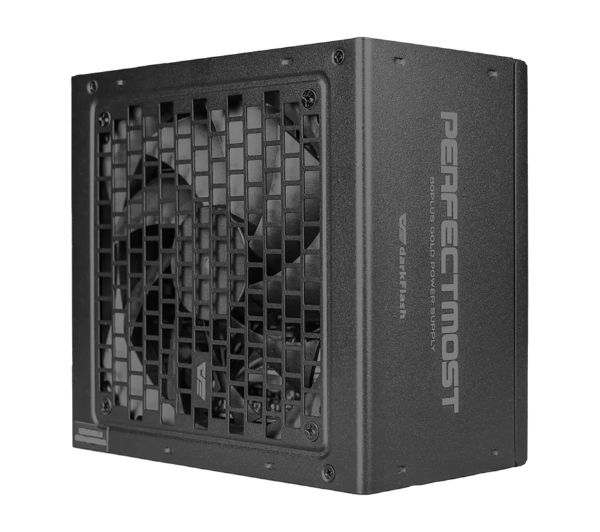 <h2>Zasilacz do komputera Darkflash PMT 80 Plus Gold 850W (czarny)</h2><p>Darkflash PMT850A3 to nowoczesny zasilacz w standardzie ATX (Advanced Technology eXtended, zaawansowany standard płyty głównej i zasilaczy), zaprojektowany z myślą o wymagających użytkownikach – graczach, twórcach treści i profesjonalistach. Pełna zgodność z normami ATX 3.1 oraz PCIe (Peripheral Component Interconnect Express, magistrala do komunikacji podzespołów) 5.1 gwarantuje bezproblemową współpracę z najnowszymi kartami graficznymi, w tym seriami NVIDIA RTX 40 oraz AMD Radeon. Wbudowane złącze 12VHPWR (12 Volt High Power, wysokoprądowe złącze 12-woltowe) o mocy do 600 watów, wysoka efektywność potwierdzona certyfikatem 80 Plus Gold oraz rozbudowany pakiet zabezpieczeń sprawiają, że jest to niezawodna baza dla wydajnych zestawów komputerowych.</p><h2>Pełna kompatybilność z nowoczesnymi kartami graficznymi i wysokoprądowym złączem zasilania</h2><p>Zasilacz został wyposażony w natywny przewód 12VHPWR (12+4 pin) o długości 650 milimetrów, który bezpośrednio dostarcza do 600 watów mocy kartom graficznym zgodnym z PCIe 5.1. Takie rozwiązanie eliminuje konieczność używania przejściówek, zwiększając bezpieczeństwo oraz estetykę instalacji. Producent zaleca montaż przewodu w odległości minimum 35 milimetrów od bocznego panelu obudowy oraz unikanie ostrych zagięć, co chroni złącze przed uszkodzeniami i zapewnia stabilny przesył energii.</p><h2>Stabilna praca zgodna z nowoczesnym standardem zasilania komputerów</h2><p>Wsparcie dla standardu ATX 3.1 umożliwia obsługę chwilowych skoków zapotrzebowania na moc nawet do 200 procent wartości znamionowej. Zgodność z wytycznymi Intel PSDG (Power Supply Design Guide, wytyczne projektowe dla zasilaczy) sprawia, że zasilacz bez trudu radzi sobie z dynamicznym obciążeniem generowanym przez nowoczesne procesory oraz karty graficzne. Efektem jest stabilna i niezawodna praca całego systemu, nawet podczas intensywnego użytkowania.</p><h2>Wysoka efektywność i realne oszczędności</h2><p>Certyfikat 80 Plus Gold potwierdza sprawność sięgającą 91 procent przy typowym obciążeniu (230 woltów), co oznacza mniejsze straty energii oraz niższą emisję ciepła. Przekłada się to nie tylko na cichszą pracę, ale również na niższe koszty eksploatacji. Zgodność z normą ErP (Energy-related Products, dyrektywa dotycząca energooszczędności) Lot 3 2014 zapewnia pobór mocy poniżej 0,5 wata w trybie czuwania, a aktywne PFC (Power Factor Correction, korekcja współczynnika mocy) o sprawności 99 procent poprawia wykorzystanie energii z sieci i redukuje zakłócenia elektromagnetyczne. Układ ten gwarantuje stabilne napięcia nawet przy zmiennym obciążeniu.</p><h2>Jedna wydajna linia zasilania dla kluczowych podzespołów</h2><p>Konstrukcja oparta na jednej mocnej linii +12 woltów o natężeniu do 70,8 ampera pozwala w pełni wykorzystać potencjał zasilacza przy zasilaniu CPU (Central Processing Unit, jednostka centralna) oraz GPU (Graphics Processing Unit, procesor graficzny). Dzięki zastosowaniu przetwornic DC to DC (Direct Current to Direct Current, konwersja prądu stałego) napięcia +5 woltów i +3,3 wolta są generowane bezpośrednio z linii +12 woltów, co zwiększa stabilność oraz ogranicza straty energii. Takie rozwiązanie upraszcza zarządzanie obciążeniem i minimalizuje ryzyko przeciążenia poszczególnych torów zasilania.</p><h2>Ciche i skuteczne chłodzenie</h2><p>Za odprowadzanie ciepła odpowiada wentylator o średnicy 120 milimetrów z łożyskiem hydrodynamicznym, znany z cichej pracy oraz długiej żywotności. Uruchamia się on dopiero po przekroczeniu 30 procent obciążenia, a jego prędkość rośnie proporcjonalnie do zapotrzebowania na chłodzenie. Specjalnie zaprojektowana obudowa z perforacją kwadratową na górze i heksagonalną z tyłu usprawnia przepływ powietrza, zapewniając niski poziom hałasu przy lekkiej pracy oraz skuteczne chłodzenie pod dużym obciążeniem.</p><h2>Modułowe okablowanie dla idealnej organizacji</h2><p>Darkflash PMT850A3 oferuje w pełni modularny system przewodów, dzięki czemu podłączasz wyłącznie te kable, które są faktycznie potrzebne. Płaskie, elastyczne przewody 18 AWG (American Wire Gauge, amerykańska skala grubości przewodów) ułatwiają prowadzenie okablowania i poprawiają cyrkulację powietrza wewnątrz obudowy. Zasilacz zaprojektowano z myślą o kompatybilności zarówno z najnowszymi platformami, jak i rozbudowanymi konfiguracjami z wieloma dyskami oraz kartami rozszerzeń.</p><h2>Kompleksowy pakiet zabezpieczeń</h2><p>Urządzenie wyposażono w siedem zaawansowanych zabezpieczeń: OVP (Over Voltage Protection, ochrona przed zbyt wysokim napięciem), OPP (Over Power Protection, ochrona przed przeciążeniem mocy), OCP (Over Current Protection, ochrona przed nadmiernym natężeniem prądu), UVP (Under Voltage Protection, ochrona przed zbyt niskim napięciem), SCP (Short Circuit Protection, ochrona przeciwzwarciowa), OTP (Over Temperature Protection, ochrona termiczna) oraz NLP (No Load Protection, ochrona przed brakiem obciążenia). Dodatkowo spełnia normę odporności na przepięcia 4 kV (Surge, ochrona przeciwprzepięciowa), skutecznie zabezpieczając podzespoły przed skutkami wyładowań atmosferycznych i zakłóceń w sieci energetycznej. System ochrony działa w czasie rzeczywistym i automatycznie reaguje na zagrożenia, zwiększając bezpieczeństwo całej konfiguracji.</p><h2>Sprawdzone komponenty i trwałość</h2><p>Wysokiej jakości japońskie kondensatory przystosowane do pracy w temperaturze do 105 stopni Celsjusza gwarantują stabilność napięć nawet podczas długotrwałego, intensywnego użytkowania. Wydajny transformator impulsowy dostarcza odpowiednią moc bez ryzyka przegrzewania, a filtr EMI (Electromagnetic Interference, filtr zakłóceń elektromagnetycznych) skutecznie eliminuje zak