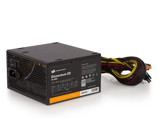 Zasilacz Elementum E2 SI 450W 80Plus EU zaprojektowano z myślą o integratorach komputerów PC. Moc oraz okablowanie zostały dobrane tak, aby pozwolić na zbudowanie praktycznie dowolnego zestawu z pojedynczą kartą graficzną wymagającą złącza zasilania PCI-E 6 lub 8 pin.Zasilacz ten zapewnia pełne 450W mocy ciągłej, spełnia wymogi standardów ErP Lot 6 oraz 80 Plus 230 V EU. Pozwala na budowę komputerów zgodnych z wymogami normy Energy Star 6.