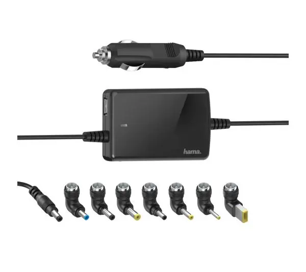 <h2>Hama ZASILACZ SAMOCHODOWY DO NOTEBOOKA , 15-19V/70W</h2><h3>Uniwersalny zasilacz samochodowy do laptopa z wymiennymi, najpopularniejszymi złączami.</h3><h3>Dla zmotoryzowanych</h3><p>Jeśli często podróżujesz samochodem i jednocześnie nie możesz rozstać się ze swoim laptopem to ten zasilacz jest rozwiązaniem w sam raz na Twoje potrzeby. Życie w ciągłym ruchu powoduje, że czasem brakuje dostępu do tradycyjnych źródeł prądu, dlatego warto móc skorzystać z gniazdka zapalniczki w samochodzie.</p><h3>Mały i estetyczny</h3><p>Nowoczesna estetyka w połączeniu z kompaktowym rozmiarem. Zasilacz będąc wyraźnie mniejszy od tradycyjnych modeli, zmieści się w każdej torbie nie zajmując za dużo miejsca.</p><h3>W zgodzie z nową ekodyrektywą unijną</h3><p>1 kwietnia 2020 weszły w życie nowe wymogi dotyczące ekoprojektu dla zasilaczy zewnętrznych o mocy wyjściowej maksymalnie 250 W. Ten zasilacz został dostosowany do nowych przepisów i dzięki temu ma pozytywny wpływ na środowisko, dokładając swoją cegiełkę do zmniejszenia produkcji dwutlenku węgla. Spełniając te wymogi nie traci przy tym zarówno na mocy jak i na wydajności, konsumując za to mniej energii kiedy nie jest używany. Jeśli chodzi o same zasilacze notebookowe, według Ministerstwa Środowiska powinny one rocznie oszczędzać 500.000 ton CO2 i 94 miliardy Wh.</p><h3>Wiele końcówek</h3><p>Dzięki wymiennym, najpopularniejszym adapterom ten zasilacz będzie mógł obsłużyć inne modele laptopów, które posiadasz w swoim domu, lub nabędziesz w przyszłości. Możesz wybierać pomiędzy końcówkami do laptopów następujących firm: HP, HP Mini, Dell, Acer, Asus, Medion, Fujitsu, MSI, Toshiba, Dynabook, Lenovo oraz Samsung.</p><h3>Dodatkowe gniazdo USB</h3><p>Gdy zasilacz jest podłączony do prądu nie musisz specjalnie podłączać kolejnej ładowarki do gniazdka. Po prostu skorzystaj z dodatkowego gniazda USB, które daje możliwość zasilania innych urządzeń.</p><h3>Praktyczna dioda LED</h3><p>Automatycznie reagująca na napięcie dioda komunikuje o tym, że proces ładowania przebiega pomyślnie. Niezależnie od warunków oświetleniowych zawsze możesz upewnić się, czy Twój laptop na pewno jest podłączony do prądu.</p><h3>Organizer kabla</h3><p>Nie ulegaj plątaninie kabli. Dołączony do zestawu organizer pozwala zapanować nad nieładem w torbie i spiąć zwinięty przewód.</p><h2>Dane techniczne:</h2><ul> <li>Uniwersalna ładowarka samochodowa do laptopów</li> <li>Uniwersalny zasilacz samochodowy do laptopów</li> <li>Dodatkowe gniazdo USB do ładowania innych urządzeń</li> <li>Dioda funkcyjna LED informuje o stanie urządzenia</li> <li>Kompaktowy i lekki</li> <li>W zestawie wymienne złącza do najpopularniejszych modeli laptopów dostępnych na rynku: HP, HP Mini, Dell, Acer, Asus, Medion, Fujitsu, MSI, Toshiba, Dynabook, Lenovo, Samsung</li> <li>Urządzenie zgodne z nową ekodyrektywą unijną</li> <li>Organizer do kabli</li> <li>Łączność: gniazdo samochodowe zapalniczki</li> <li>Maksymalna moc wyjściowa: 70 W</li> <li>Prąd wejściowy: 12 – 15 V</li> <li>Długość kabla na wyjściu: 1,45 m</li> <li>Długość kabla na wejściu: 0,3 m</li> <li>Wymiary zasilacza: 10,2 x 5,6 x 1,7 cm</li> <li>Waga: 172,6 g</li></ul><h2>Korzyści dla Ciebie:</h2><ul> <li>Ładowanie w samochodzie</li> <li>Kompaktowy design</li> <li>Dioda funkcyjna LED</li> <li>Dodatkowe gniazdo USB</li> <li>Organizer kabla</li></ul><h2>Dlaczego Hama?</h2><p>Jesteśmy niemieckim producentem i dystrybutorem akcesoriów oraz sprzętu elektronicznego. Działamy w wielu obszarach, śledzimy trendy technologiczne i już od niemal 100 lat tworzymy rozwiązania, które sprawiają, że codzienne życie jest po prostu łatwiejsze.</p><p>Artykuły Hama to niezawodne i certyfikowane produkty, które poddawane są restrykcyjnym testom przez nasz wewnętrzny dział zapewnienia jakości QC . Posiadają wszystkie wymagane prawem certyfikaty, dopuszczające je do handlu w Polsce, m.in. CE i TÜV. W konsekwencji wszystkie nasze produkty są w pełni bezpieczne dla swoich użytkowników.</p><p>Myślisz poważnie o akcesoriach, pomyśl o produktach Hama. Bez względu na to, jakie urządzenie posiadasz, z pewnością mamy do niego funkcjonalne uzupełnienie.</p>