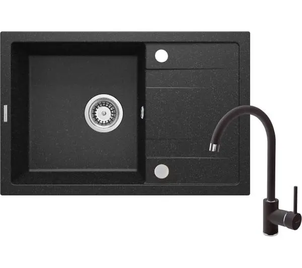 Polska marka 30 latEko opakowaniaPotrójna kontrola jakościKolekcja Corio Zlewozmywak granitowy z baterią 1-komorowy z ociekaczem <h4>Zalety produktu</h4><ul> <li> Właściwości granitu Deante: odporność na uderzenia, wysoką temperaturę, przebarwienia, szok termiczny</li> <li> Zlewozmywak wyposażony w osprzęt z podłączeniem do zmywarki</li> <li> Właściwości hydrofobowe odpychają cząsteczki wody</li> <li> W ofercie dedykowany środek bezpieczny dla czyszczonych powierzchni</li> <li> Wężyki przyłączeniowe w komplecie</li> <li> Bateria wyposażona w aerator napowietrzający strumień</li> <li> Najdłuższa 18-letnia gwarancja</li> <li> Syfon oszczędzający miejsce Space-saver ułatwiający m.in. segregację śmieci</li> <li> Zlewozmywak odwracalny - zamontuj z komorą po lewej lub po prawej</li> <li> Tuleja montażowa ułatwia montaż baterii</li></ul>Właściwości granitu Deante: odporność na uderzenia, wysoką temperaturę, przebarwienia, szok termicznyWłaściwości hydrofobowe odpychają cząsteczki wodyW ofercie dedykowany środek bezpieczny dla czyszczonych powierzchniBateria wyposażona w aerator napowietrzający strumień<h2>Opis produktu</h2><p>Zlewozmywak Corio wraz z baterią to perfekcyjnie dobrany zestaw do nowoczesnej łazienki. Granit, z którego wykonany jest zestaw, charakteryzuje się niezwykłą odpornością na uderzenia, szok termiczny oraz przebarwienia - zgodnie z normą PN-EN 13310. Wysoka bateria ułatwia prace kuchenne, pozwala na łatwe napełnienie wodą nawet bardzo wysokiego garnka. Dodatkowo wyposażona jest w aerator napowietrzający strumień wody, co znacznie ogranicza jej zużycie. Całość wykończona w eleganckim grafitowym kolorze. </p><h3>Właściwości granitu Deante: odporność na uderzenia, wysoką temperaturę, przebarwienia, szok termiczny</h3>Kompozyt granitowy to kombinacja piasku kwarcowego i żywic w odmierzonych ściśle proporcjach. Jest to powód, dlaczego nasze zlewozmywaki są odporne nie tylko na uderzenia, ale także wysoką temperaturę (250°C), odbarwienia i szok termiczny - zgodnie z normą europejską PN-EN 13310. Nie przejmują zapachówi mają właściwości hydrofobowe, odpychające cząsteczki wody. Granit jest szlachetny i zawsze modny, a dzięki bogactwu kolorów dobrze współgra z wyposażeniem każdej kuchni – futurystycznej i klasycznej. Zlewozmywaki granitowe marki Deante powstaję w Polsce, w jednej z najbardziej rozwiniętych fabryk w Europie. Postępowa technologia produkcji daje możliwość zachowania najwyższych standardów wykonania i audytu jakości, co skutkuje nie tylko świetnym wyglądem produktu, ale też jego unikalnymi właściwościami.<h3>Właściwości hydrofobowe odpychają cząsteczki wody</h3>Hydrofobowość to jedna z naturalnych cech granitu, bardzo przydatna w kuchni. Nawierzchnia zlewozmywaka odrzuca drobiny wody, dlatego krople bez trudności ściekają zabierając ze sobą cząsteczki brudu. Wszystko to sprawia, że sprzątanie zlewozmywaka jest dużo łatwiejsze i nie jest konieczne szorowanie ani użycie specjalistycznej chemii. <h3>W ofercie dedykowany środek bezpieczny dla czyszczonych powierzchni</h3>Użycie dedykowanych środków powoduje, że powierzchnie nie niszczą się i długo pozostają gładkie, ułatwiając kolejne sprzątanie. Specjalnie dobrany skład usuwa najczęściej spotykane zabrudzenia bardzo skutecznie. Z drugiej strony preparaty są delikatne dla danego typu nawierzchni (metal, granit, ceramika i inne), nie wchodząc z nimi w reakcje chemiczne. Preparaty są biodegradowalne i tym samym bezpieczne dla środowiska. Ze środkami do czyszczenia Deante utrzymanie nienagannego porządku będzie bardzo proste!<h3>Bateria wyposażona w aerator napowietrzający strumień</h3>Bateria wyposażona została w aerator, dzięki któremu strumień wody jest doskonale napowietrzony i miękki. Rozwiązanie to poprawia komfort użytkowania, zarazem ograniczając zużycie wody, co przekłada się na niższe rachunki domowe. Zyskujesz też świadomość, że przyczyniasz się do dbania o naszą planetę. <h3>Syfon oszczędzający miejsce Space-saver ułatwiający m.in. segregację śmieci</h3>Zlewozmywak został wyposażony w innowacyjny syfon „Space Saver”. Jeśli do tej pory dręczyły Cię kolanka i rury zajmujące całą przestrzeń w szafce, jest to rozwiązanie dla Twojej kuchni. Specjalna konstrukcja i teleskopowa budowa pozwala dopasować ustawienie syfonu do potrzeb. Dzięki temu w szafce prosto wygospodarować dużo więcej miejsca, które można wykorzystać na domowe przetwory czy kosze na śmieci. Istnieje też możliwość podłączenia do syfonu pralki lub zmywarki. I co najważniejsze — syfon dostajesz w komplecie!<h3>Zlewozmywak odwracalny - zamontuj z komorą po lewej lub po prawej</h3>Fabrycznie wywiercone w zlewozmywaku otwory posiadają wiele atutów. Po pierwsze pozwalają na wybór strony prawej lub lewej, gdzie będziemy mieli ociekacz, dlatego zlewozmywak jest uniwersalny. Montaż jest banalny i zwalnia z potrzeby kłopotliwego drążenia otworów samodzielnie. Oprócz tego otwory dają możliwość szybkiego dołączenia dozownika na płyn do mycia naczyń lub korka automatycznego.
