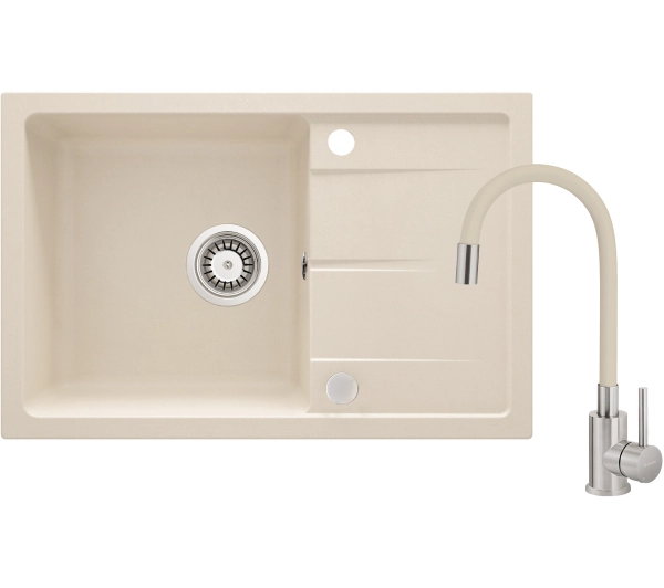 Wyposażenie: bateria kuchenna, instrukcja montażu, karta gwarancyjna, syfon, wężyki podłączeniowe, zlewozmywak