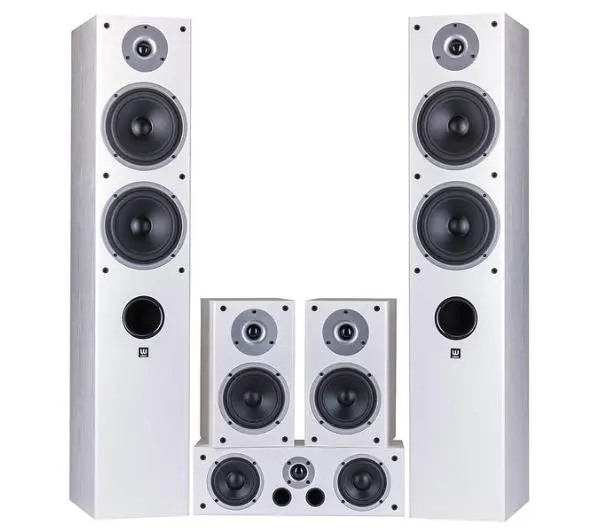 Skład zestawu: 2x głośnik przedni, 2x głośniki surround, głośnik centralny