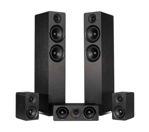 Skład zestawu: 2x głośnik przedni, 2x głośniki surround, głośnik centralny