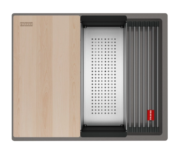 Akcesoria: deska kuchenna, rollmata, wkładka ociekowa, korek zatyczkowy