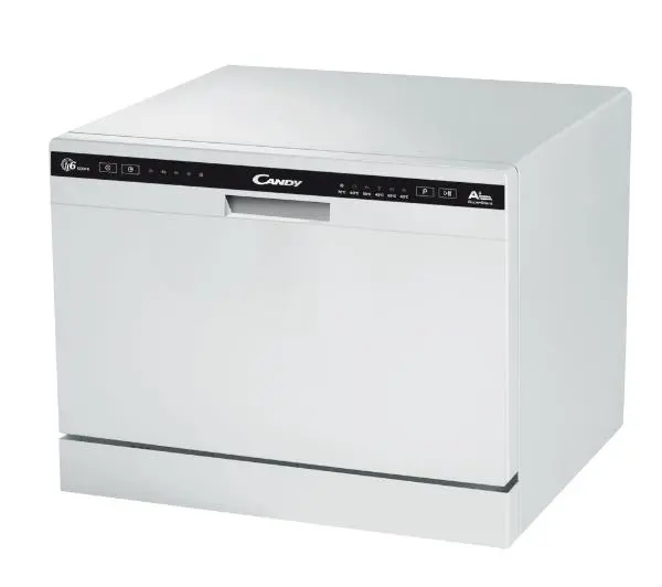 <a>Najważniejsze zalety </a><a>Funkcje i technologie </a><a>Pytania i odpowiedzi</a><h2>Poznaj zmywarkę wolnostojącą</h2><h4>Postaw na innowacyjne technologie i oszczędność w Twoim domu Candy Nablatowa mini CDCP 6</h4><h3>WYMIARY</h3><h3>Zmywarka kompaktowa 6-kompletowa</h3><p>Wymiary 55 cm szer. x 50 cm gł. x 44 cm wys.</p><h3>OSZCZĘDNOŚĆ</h3><h3>Klasa energetyczna F</h3><p>Klasa energetyczna F oznacza niższe rachunki za prąd</p><h3>PONADCZASOWY STYL</h3><h3>Włoski design</h3><p>Projekt zachwycający oryginalnością i niezawodna jakość</p><h3>POJEMNOŚĆ</h3><h3>6 kompletów naczyń</h3><p>Zmywarka może pomieścić do 66 elementów zastawy stołowej</p><h4>6 programów</h4><h4>Do małych kuchni</h4><h4>Opóźniony start o 2-4-8 h</h4><h4>Intuicyjna obsługa</h4><h4>Cicha praca</h4><h4>Program Eco</h4><h2>Zobacz funkcje zmywarki</h2><h4>Candy Nablatowa mini CDCP 6</h4><h3>Kompaktowa zmywarka Candy</h3> <p>Zmywarka o kompaktowej szerokości 55 cm, z wnętrzem wykonanym w całości ze stali nierdzewnej i o pojemności gwarantującej wsad do 6 kompletów naczyń. Swobodnie zmieścisz ją nawet w małej kuchni, aby móc cieszyć się czystymi naczyniami i zaoszczędzonym czasem.</p><h3>6 programów</h3> <p>Zmywarka Candy oferuje sześć programów, które wyjdą na przeciw każdej potrzebie zmywania. Dla naczyń mocno zabrudzonych Program Intensywny, do codziennego zmywania Program Eco najbardziej efektywny pod względem poboru prądu i wody, a do błyskawicznego mycia cykl Szybki.</p><h3>Czyste naczynia już w 30 minut</h3> <p>Żyjesz w szybkim tempie i cenisz swój czas, który wykorzystujesz możliwie najintensywniej? Rozumiemy to. Dlatego zmywarka Candy została wyposażona w program Szybki, dzięki któremu możesz cieszyć się czystymi naczyniami w zaledwie pół godziny.</p><h3>Dołóż naczynia po rozpoczęciu zmywania</h3> <p>Jak często zdarza Ci się zapomnieć o ostatniej szklance lub łyżeczce? W zmywarce Candy możesz przerwać cykl zmywania i włożyć do zmywarki dodatkowe naczynia i sztućce – bez konieczności rozpoczynania od początku.</p><h3>6 kompletów naczyń</h3> <p>Zmywarki nablatowe Candy to idealne rozwiązanie dla osób mających ograniczone miejsce w kuchni. Pomimo niewielkich rozmiarów może pomieścić aż 6 kompletów naczyń, składających się łącznie z 66 elementów zastawy stołowej.</p><h3>Opóźnienie startu o 2-4-8h</h3> <p>Bardzo pomocna opcja ustawiania godziny, o której zmywarka ma rozpocząć proces zmywania, w odstępie 2, 4 lub 8 godzin. Teraz możesz ograniczyć rachunki za prąd, korzystając z taryfy nocnej i zaprogramować początek pracy zmywarki tuż przed snem tak, by rano naczynia były czyste i suche.</p><h3>Cicha praca dba o spokój domowników</h3> <p>Współczesne urządzenia muszą być nie tylko wydajne, ale również przyjazne dla użytkowników. Niska emisja dźwięku podczas pracy zmywarki powoduje, że mycie naczyń można zaplanować nawet późną porą, bez obaw, że zakłóci sen.</p><h3>Program Uniwersalny - wygoda na co dzień</h3> <p>Program Uniwersalny przeznaczony do zmywania raz dziennie, w temperaturze 60°C, normalnie zabrudzonych naczyń i pozostawionych w zmywarce na cały dzień. Czyste naczynia zawsze pod ręką i mnóstwo zaoszczędzonego czasu!</p><h3>Program ECO 50°C - mniejsze rachunki</h3> <p>Najbardziej efektywny program pod względem łącznego zużycia energii i wody, przeznaczony do zmywania naczyń normalnie zabrudzonych. Cykl Eco to nie tylko oszczędności dla domowego budżetu, ale również zrównoważone użytkowanie w trosce o środowisko.</p><h2>Odkryj więcej funkcji</h2><h4>Candy Nablatowa mini CDCP 6</h4><h3>Opóźniony start</h3><p>Funkcja umożliwia samodzielny wybór wybranej pory zmywania</p><h3>Intuicyjna obsługa</h3><p>Bezproblemowy wybór programów oraz dodatkowych funkcji</p><h3>Bardzo cicha</h3><p>Dyskretna praca urządzenia dzięki wydajnemu silnikowi</p><h3>Wskaźnik soli i nabłyszczacza</h3><p>Zmywarka automatycznie informuje o braku soli i środka nabłyszczającego</p><h3>CZY WIESZ, ŻE...?</h3><p>Twórcą pierwszej zmywarki była kobieta. Josephine Cochrane nie chciała, aby jej służba po wystawnych przyjęciach zniszczyła piekną porcelanę pdoczas mycia. Razem z mężem opracowała specjalne urządzenie do automatycznego mycia naczyń. W 1886 otrzymała patent.</p><h2>Najczęściej zadawane pytania</h2> Co zrobić przed pierwszym użyciem zmywarki? Przed pierwszym użyciem zmywarki nastaw program o najwyższej temperaturze, dodaj środek do mycia zmywarki i uruchom program bez naczyń w środku. Pomoże to wyeliminować przykre zapachy, które są naturalnym efektem magazynowania sprzętu. Jaki jest standardowy poziom hałasu zmywarki? Poziom hałasu zmywarki zazwyczaj plasuje się na poziomie między 45 a 55 dB. Jest to normalny poziom szmerów w domu czy biurze, nie zakłóca rozmów domowników. Dlaczego zmywarka po rozpakowaniu może być w środku mokra? Przed wysyłką urządzenia do sklepu, zmywarka jest testowana na szczelność przy użyciu wody. Dlaczego na naczyniach zostaje osad? Osad zostaje na naczyniach, kiedy tabletkę wrzucasz bezpośrednio na dno zmywarki zamiast do dedykowanego pojemnika. Kolejnym powodem jest zbyt twarda lub miękka woda. Zalecamy sprawdzić poziom pH wody (np. u zarządcy osiedla) a następnie postępując zgodnie z instrukcją dołączoną do opakowania, odpowiednio zaprogramuj zmywarkę.<h2>ZAINSPIRUJ SIĘ!</h2>